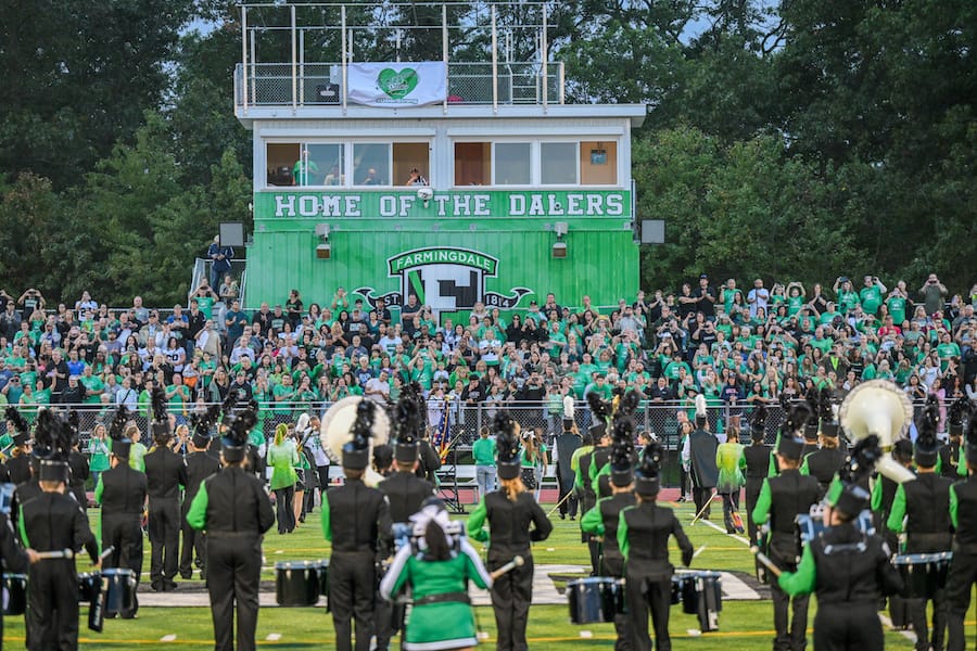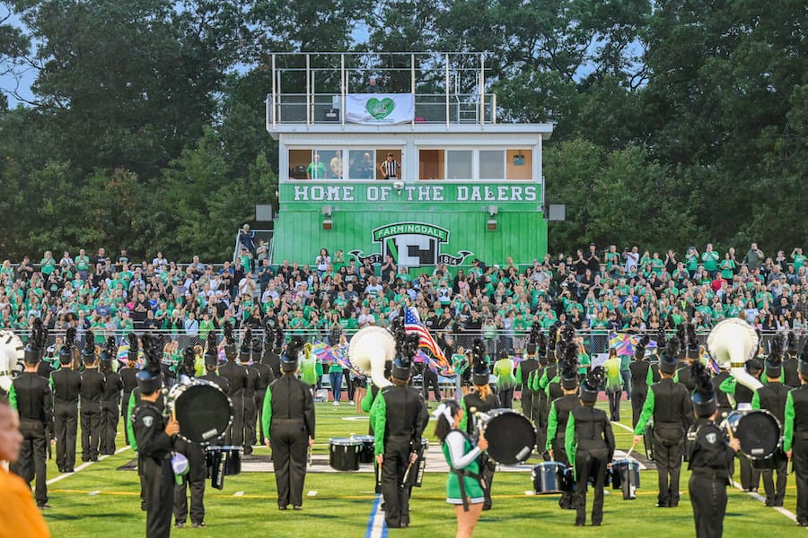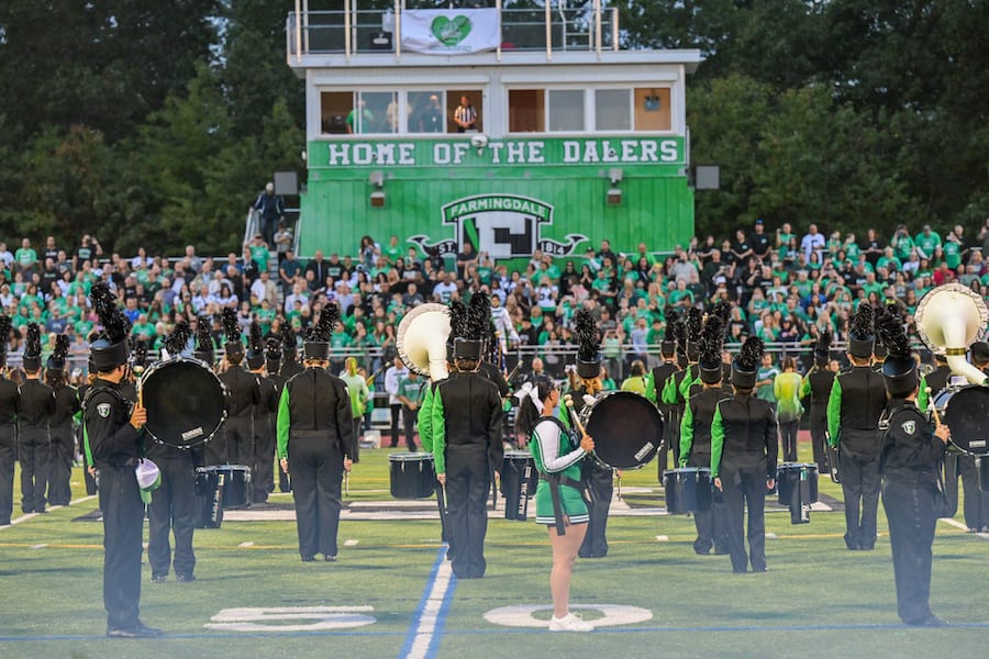 For the first time since last month’s tragic bus accident, the Farmingdale High School band returned to the field at Don Snyder Stadium for the school’s homecoming game Friday night.