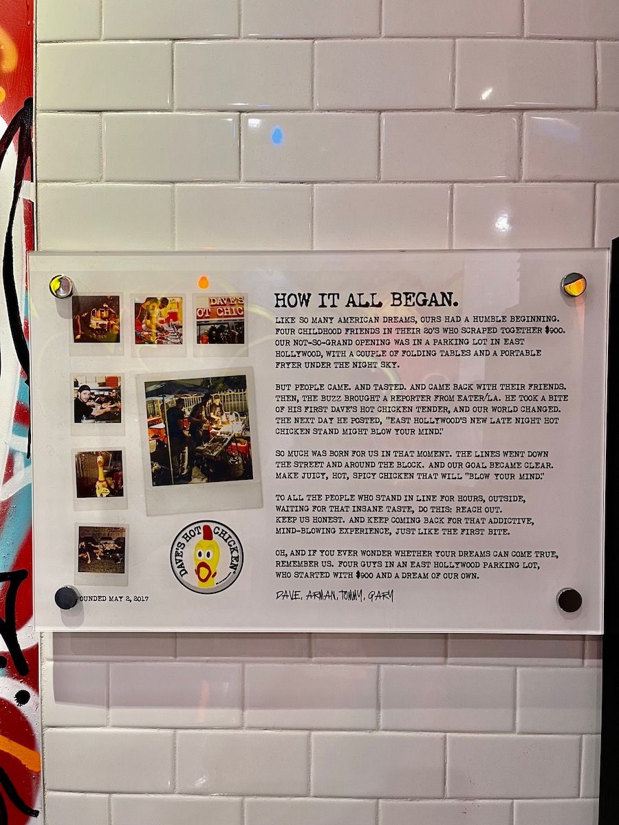 The franchise currently operates 77 locations in the United States and Canada, with over 700 other restaurants in development for the next five years. It was founded friends Dave Kopushyan, Arman Oganesyan, and brothers Tommy and Gary Rubenyan, who scrounged up $900 and started out selling hot chicken in a tiny stand set up in an East Hollywood parking lot in 2017.