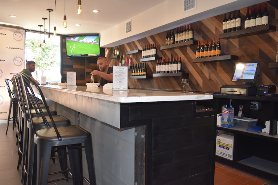 Now, for the first time, patrons were able to try their favorite Long Island Pekin staples inside the new establishment, which features an 8-seat bar across from a merchant station — that sells homemade sauces and Long Island Pekin swag— and a back dining area that fits 64 people seated.