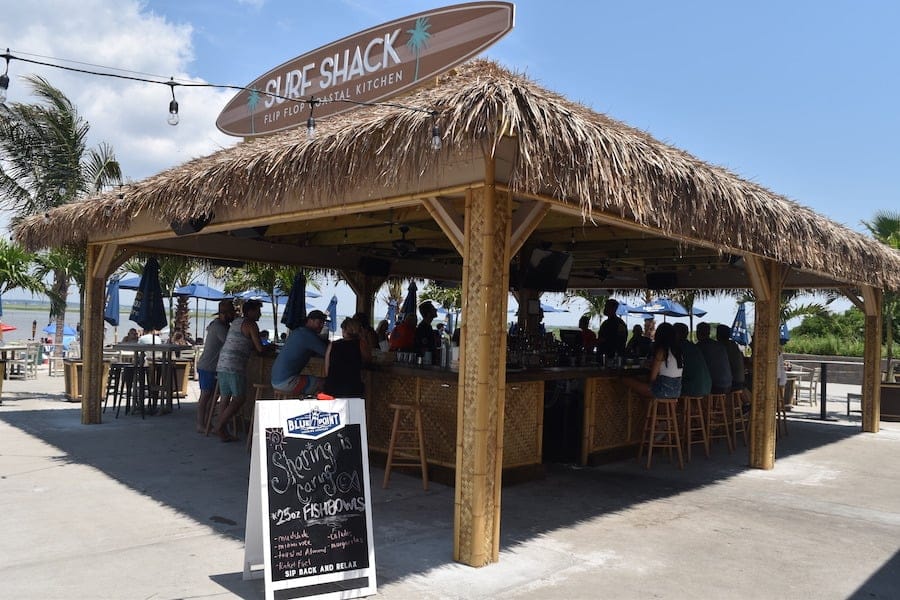 At the other location right next door, where Crazy Oyster was, sits an all-new outdoor, full-service dining experience called Surf Shack. In addition to the dining tables, there is a large tiki hut centered in the middle of the eating area.