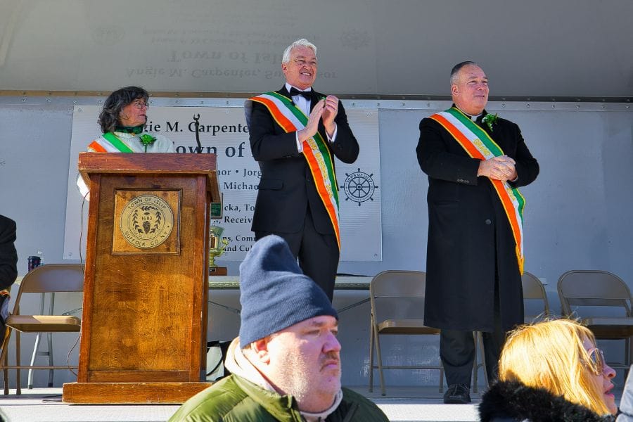 This year’s parade honored the president and CEO of Suffolk County OTB, Phil Boyle, as grand marshal. Boyle is also a former New York State senator whose offices were in the downtown.