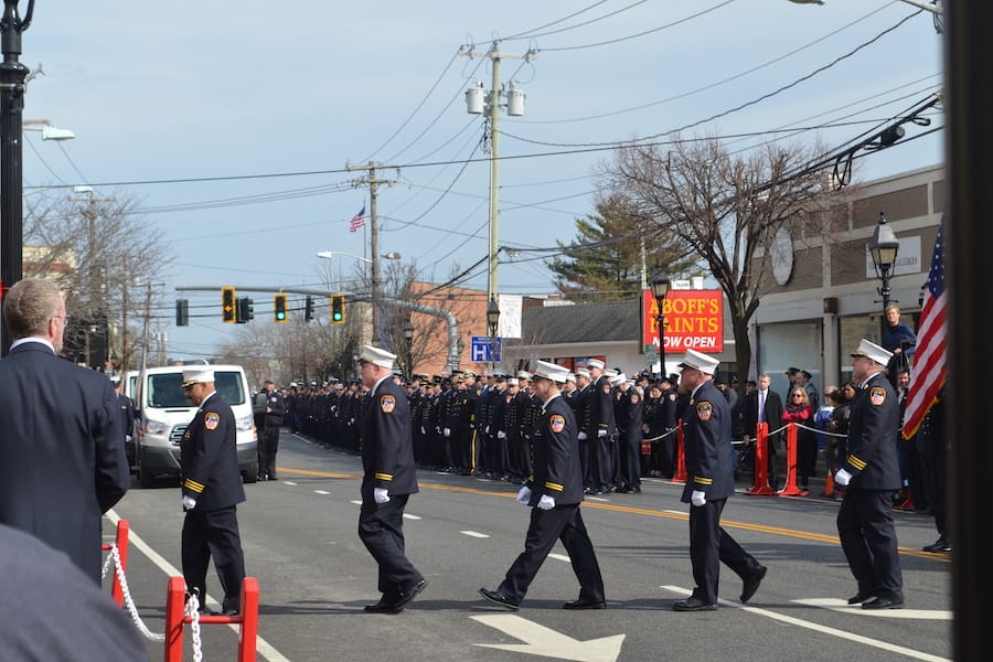 You could’ve heard a pin drop on Main Street in Bay Shore on Wednesday as more than 20,000 people awaited the procession and final send-off for fallen firefighter Jesse Gerhard.