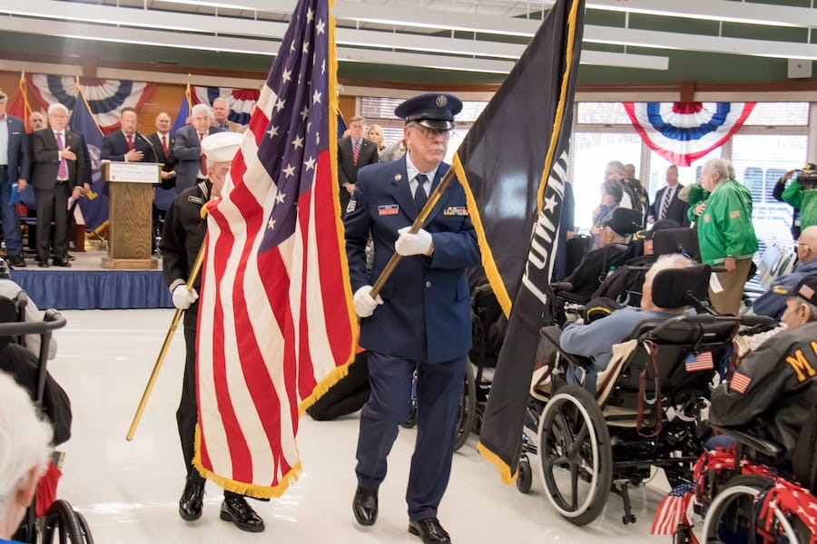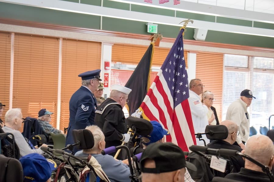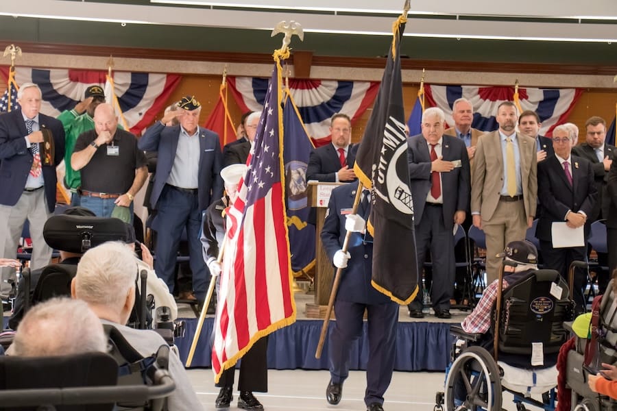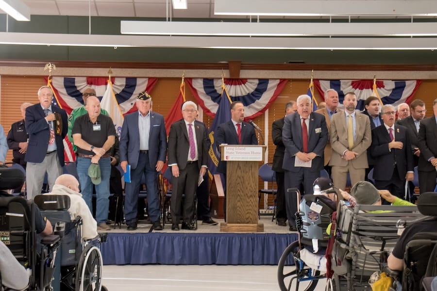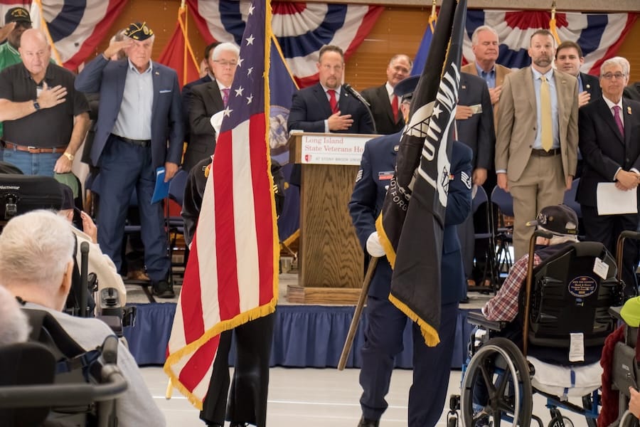 A Veterans Day ceremony was held Friday at the Long Island State Veterans Home at Stony Brook University, where community members gathered to honor veterans.