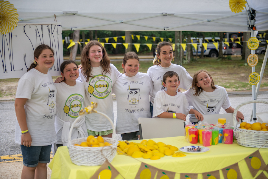 Top: Excitement at the Three Village Kids Lemonade Stand’s last fundraiser outside Robert Cushman Murphy Junior High School.