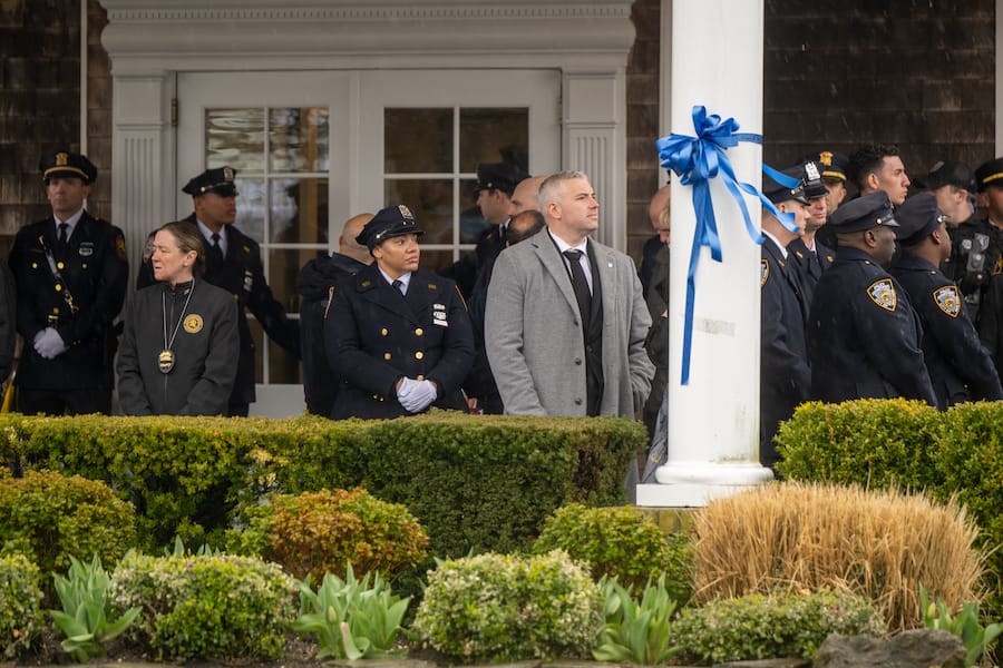 Many people, including former President Donald Trump, came to Massapequa Thursday evening to pay respects to Jonathan Diller, the NYPD officer who was shot and killed while conducting a traffic stop in Far Rockaway Monday evening.