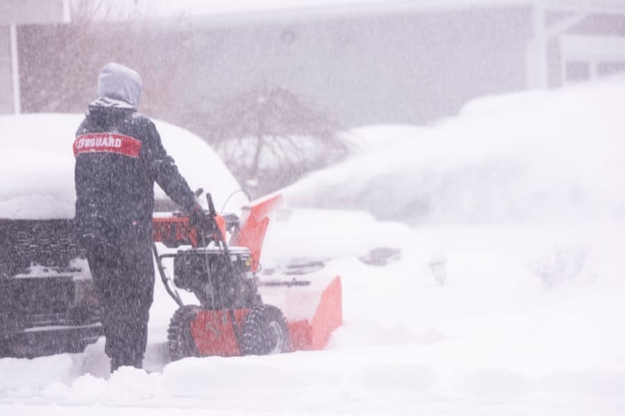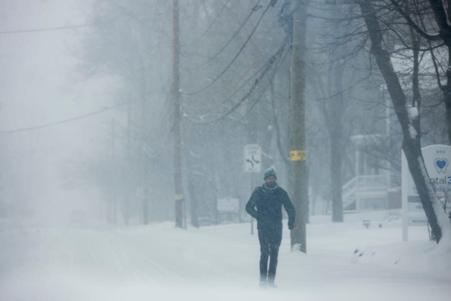 A powerful winter storm hammered Long Island throughout the day, with snow falling at rates of one to two inches per hour and wind gusts up to 35 mph. The National Weather Service forecasted that much of the area could see accumulations of eight to 12 inches of snow, with higher totals possible in persistent bands before the storm tapers off on Monday.