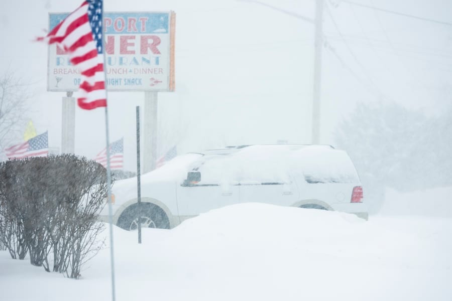 Greater Long Island photographer Andrew Theodorakis ventured out in the Port Jefferson area during the teeth of the storm to capture image of how people were coping with the snow.
