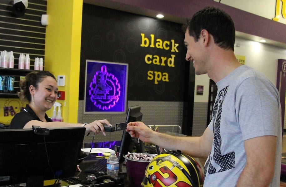Top: Gymgoer signing in to a Planet Fitness location. (Credit: Facebook)
