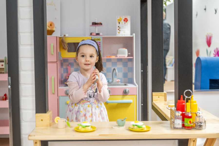 So, Karapatakis decided to create her own. Her Play Ala Mode space is designed for infants, toddlers and children up to 6 years old and features a kitchen, market, gym, and a café that comprise a little village.