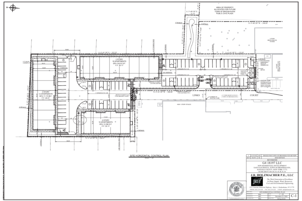 The site plans (below) indicate three, two-story apartment buildings between 12,000 and 20,000 square feet each, set behind the Dunkin’ Donuts and across from New York Cancer and Blood on East Main Street. Patchogue area residents will recognize the area as the site of the former Plaza Theatre, demolished 10 years ago this September.