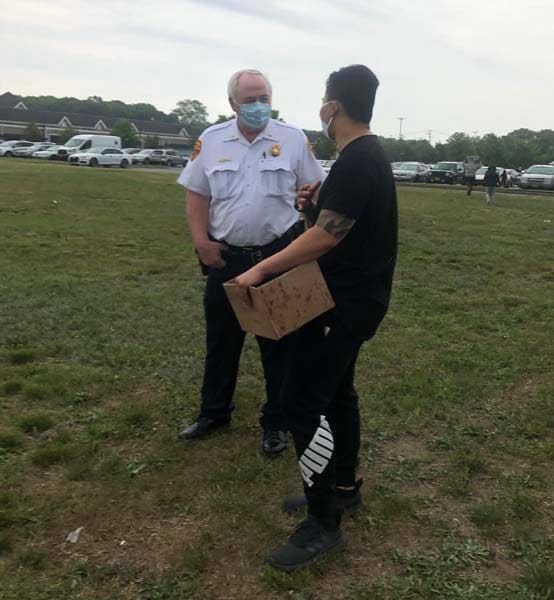 Despite heavy rain throughout the evening, people turned out in Shirley to protest against racial injustice for the fifth night in a row, sparked by the death of Minneapolis resident George Floyd while in police custody.