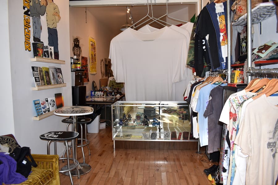 The store also has a small community library where people can check out zines from local artists, photo series or skim through pamphlets on the history of punk rock.