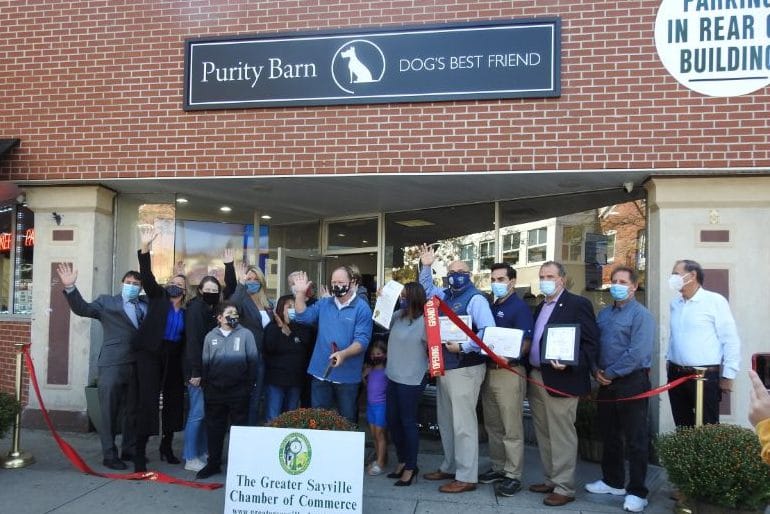 “You’ve got to be passionate about it, and you got to be inspired to do it,” he said during a special ribbon-cutting ceremony Saturday in front of his new business, Purity Barn, located next to Sayville Pizza and Richard’s Stride Rite.