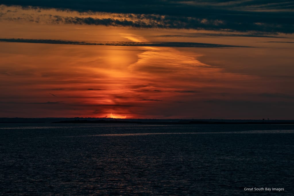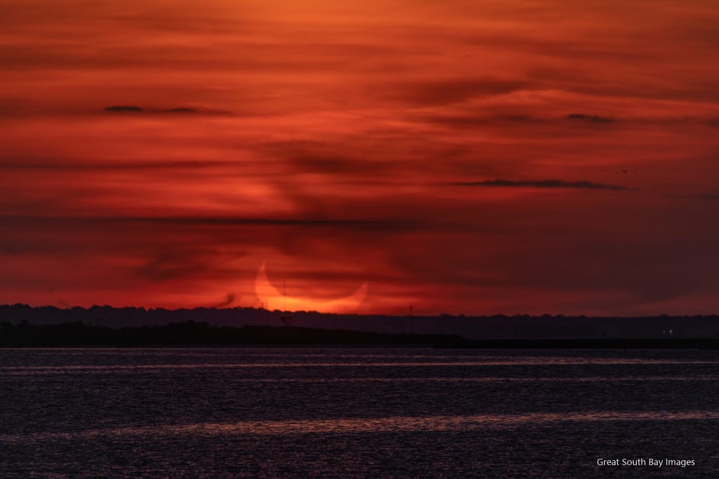 That’s exactly what intrepid Brookhaven wildlife photographer Michael Busch did — hunkering down on the Smith Point fishing pier in Shirley to capture a series of magical sunrise images of the annular solar eclipse. Busch, of Great South Bay Images, pointed his lens east over Narrows Bay and began snapping away just before 5:19 a.m.