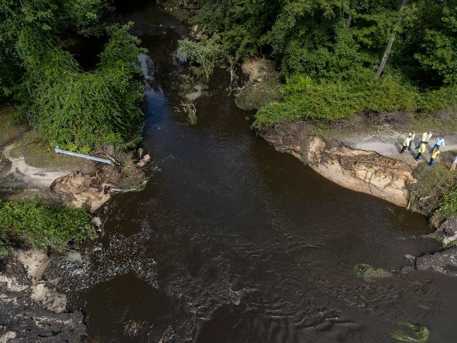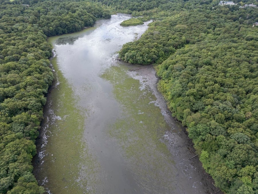 Blydenburgh Park saw its Stump Pond emptied following a dam collapse after the severe rainstorm early Monday. pic.twitter.com/629UFDdMPM