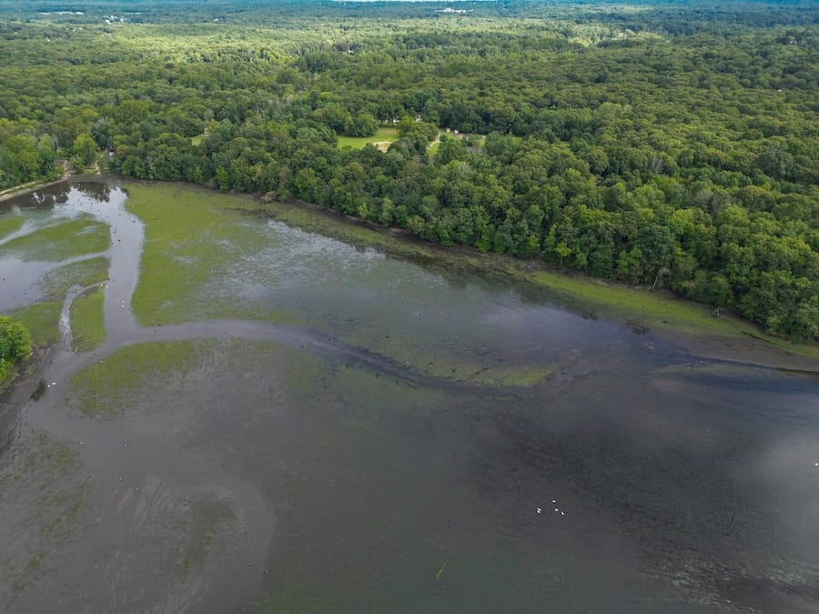 Stump Pond was dammed in 1798 to power a grist mill, according to Suffolk County Parks. In recent times, the body of water was used for recreational fishing, kayaking, and canoeing, as well as for a 5.7-mile loop trail for hikers.