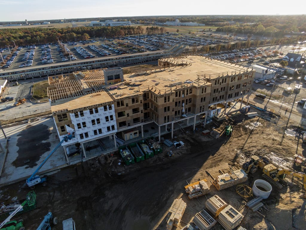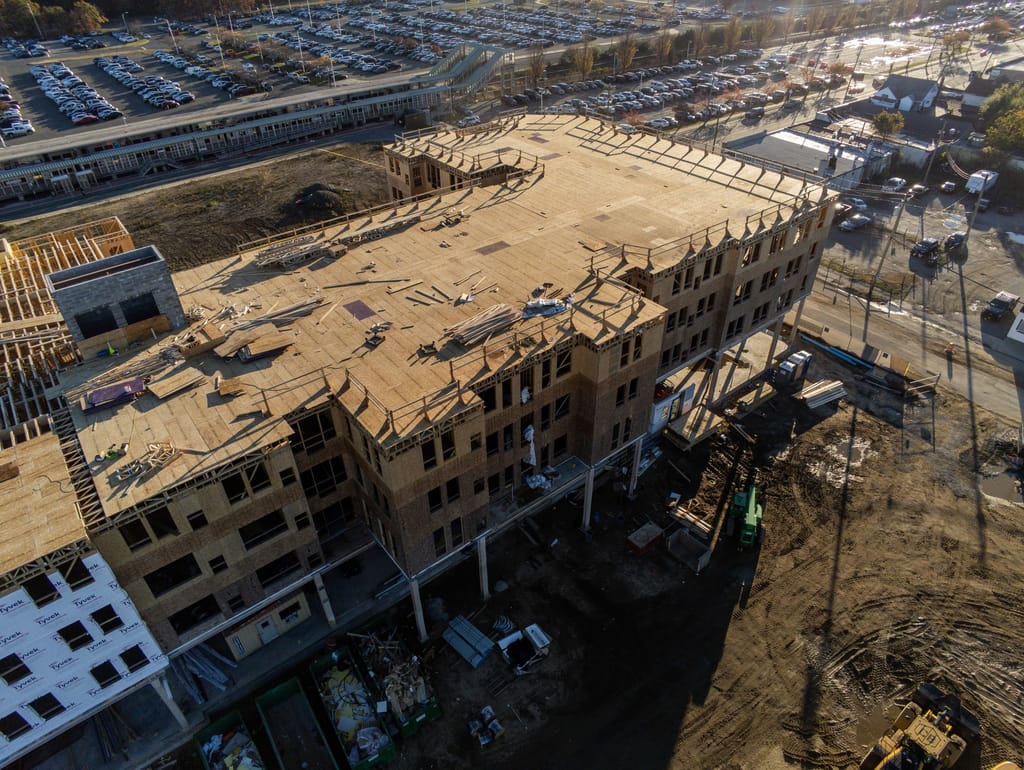 - Mechanical, electrical and plumbing systems are roughing in walls and ceilings, with fire sprinklers now installed in Building No. 2.