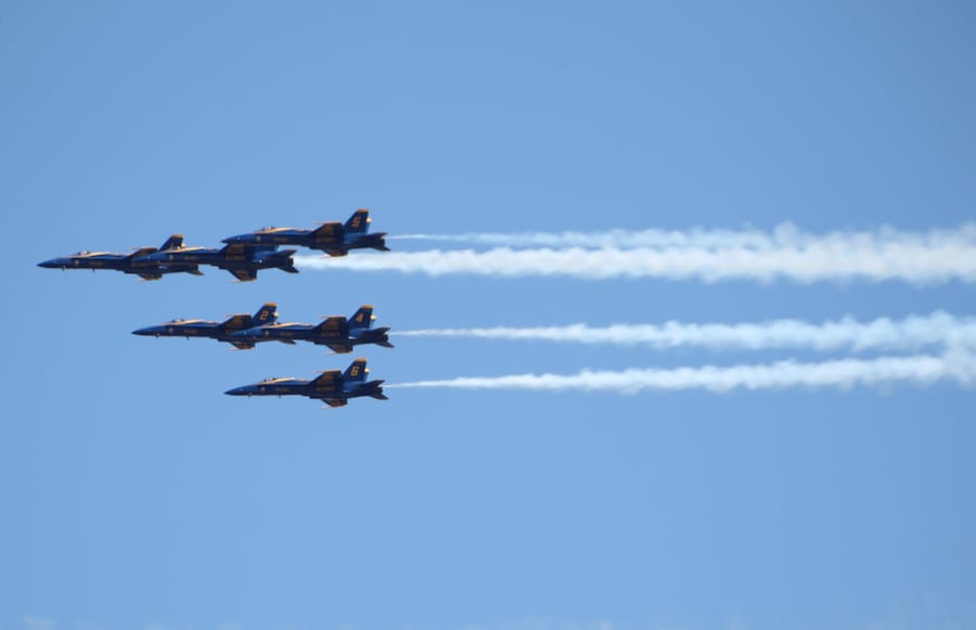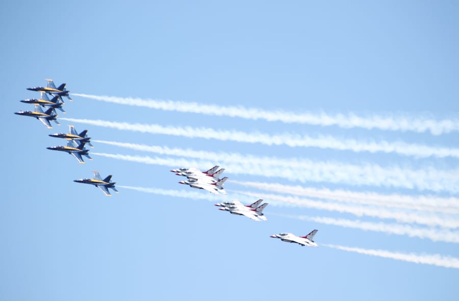 At exactly 12:21 a.m. on Tuesday, the U.S. Navy Blue Angels and U.S Air Force Thunderbirds zoomed over Stony Brook University Hospital to salute frontline healthcare workers.
