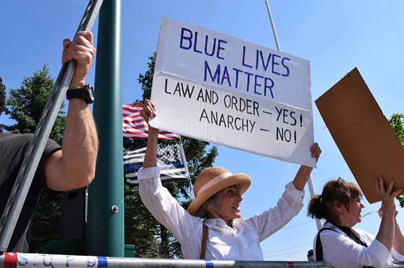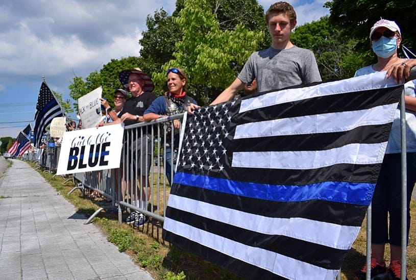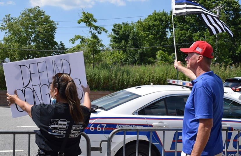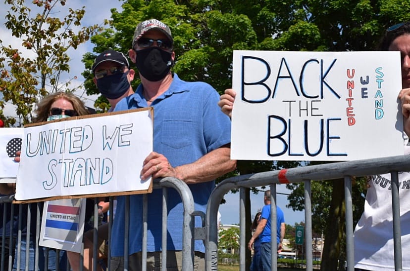 For three hours in 90-degree heat on June 22, people from across Long Island brought their black and blue flags, signs and apparel to say “thank you” to law enforcement, and voice that they want to defend the police, not defund it.