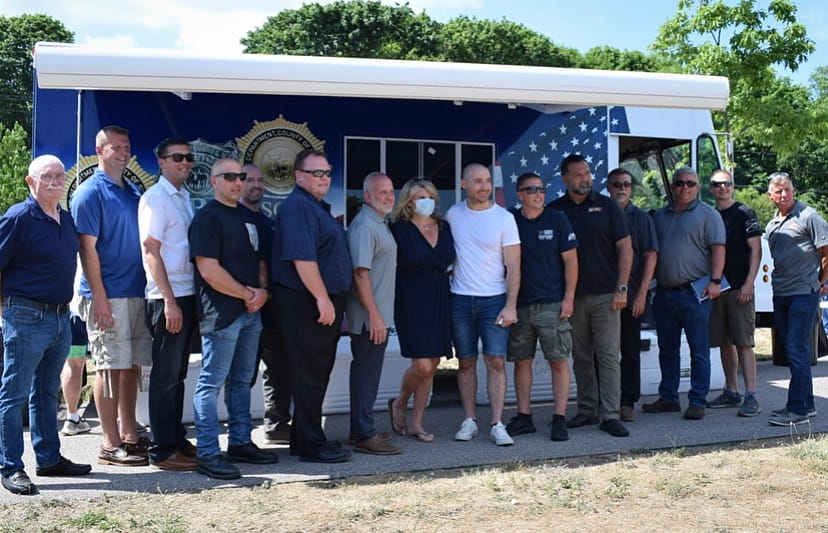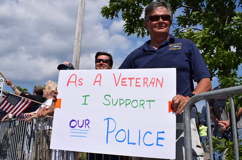 Members from the Suffolk County Police Benevolent Association and law enforcement motorcycle clubs stopped by and thanked the crowd for standing by their side.