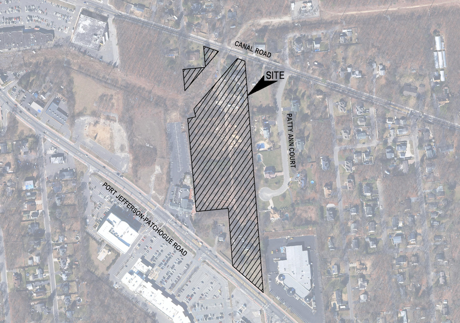 The 8.64-acre site extends from Route 112 to Canal Road and abuts Patty Ann Court to the south which terminates at a cul-de-sac. At Brookhaven Town Board meeting on  Dec. 16, representatives for the developer sought variances to allow parking 32 feet from Patty Anne Court and 90 feet to Route 112 (100 feet is required).