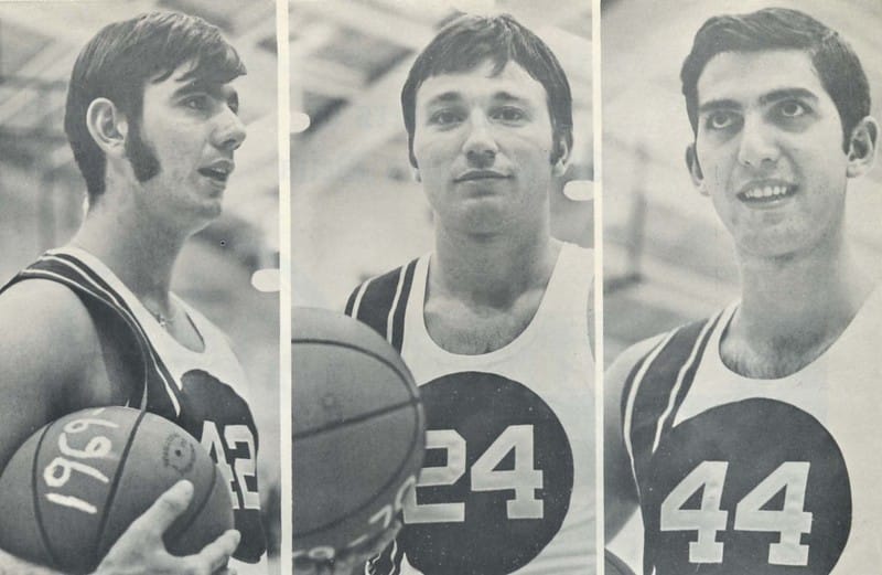 Top photo: Joe Maniaci (middle) during his time as a coach at St. Joseph’s. The photo was supplied by Tom Roeder, who is pictured to the right of Maniaci. Roeder said Maniaci sent him the photo a few years ago.