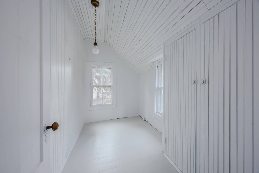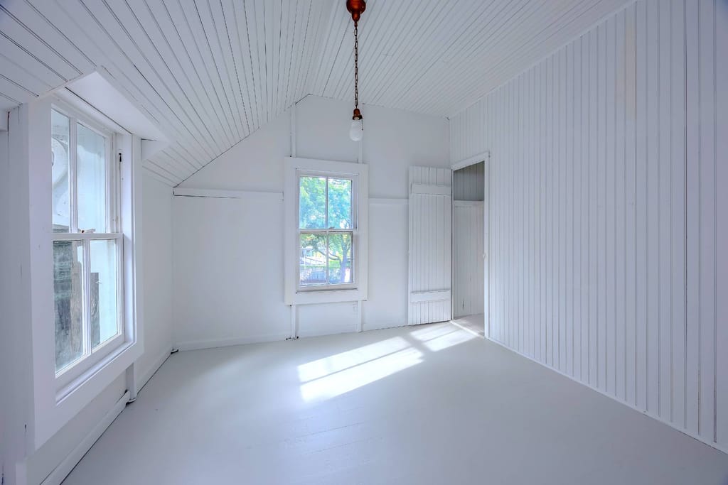 • The front bedroom includes a walk-in closet with two windows, and a screened door that leads to a Juliet balcony.
