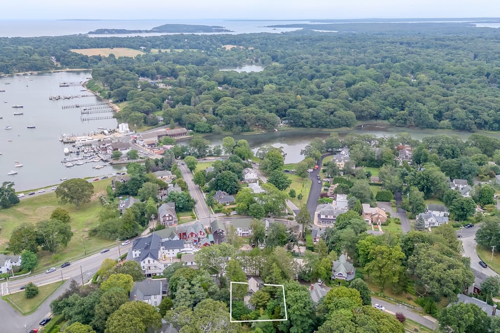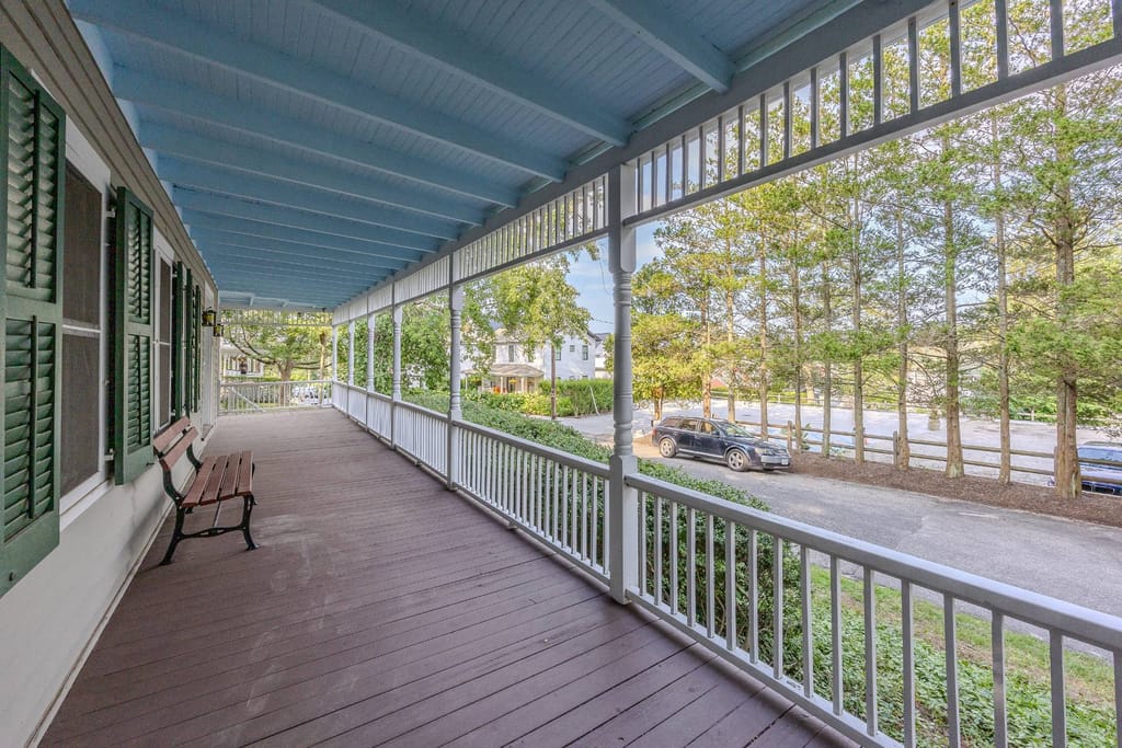 Penelope Moore of Saunders & Associates noted that the property is a stone’s throw away from the Chequit Hotel, a landmark on Shelter Island for over a century. Built in 1872, the hotel is just two years older than its vintage Washington Street neighbor with the throwback porches.