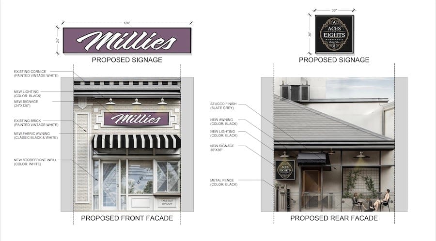 Millie’s, which he and the team plan to operate from 11 a.m. to 2 a.m., will also have a walk-up window. You can expect fries and fun milkshakes, and it’ll be 50s-themed — with some seating inside.