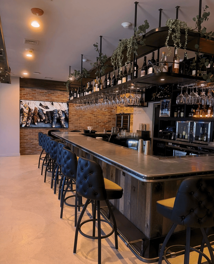 That story is reflected throughout Enology’s design and philosophy. The interior blends stone, wood and metal, inspired by the structure of a wine barrel and the atmosphere of a cellar. The menu features small plates sourced from local, family-owned farms and fresh local fish, with each dish created to complement the wine list.