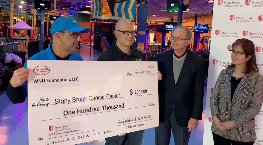 Last Thursday, Wolmetz — who co-owns Urban Air Lake Grove with his partner Keith Handler — invited the people that saved his life from Stony Brook University Cancer Center to his family entertainment facility. There, he presented the staff with a check worth $100,000.
