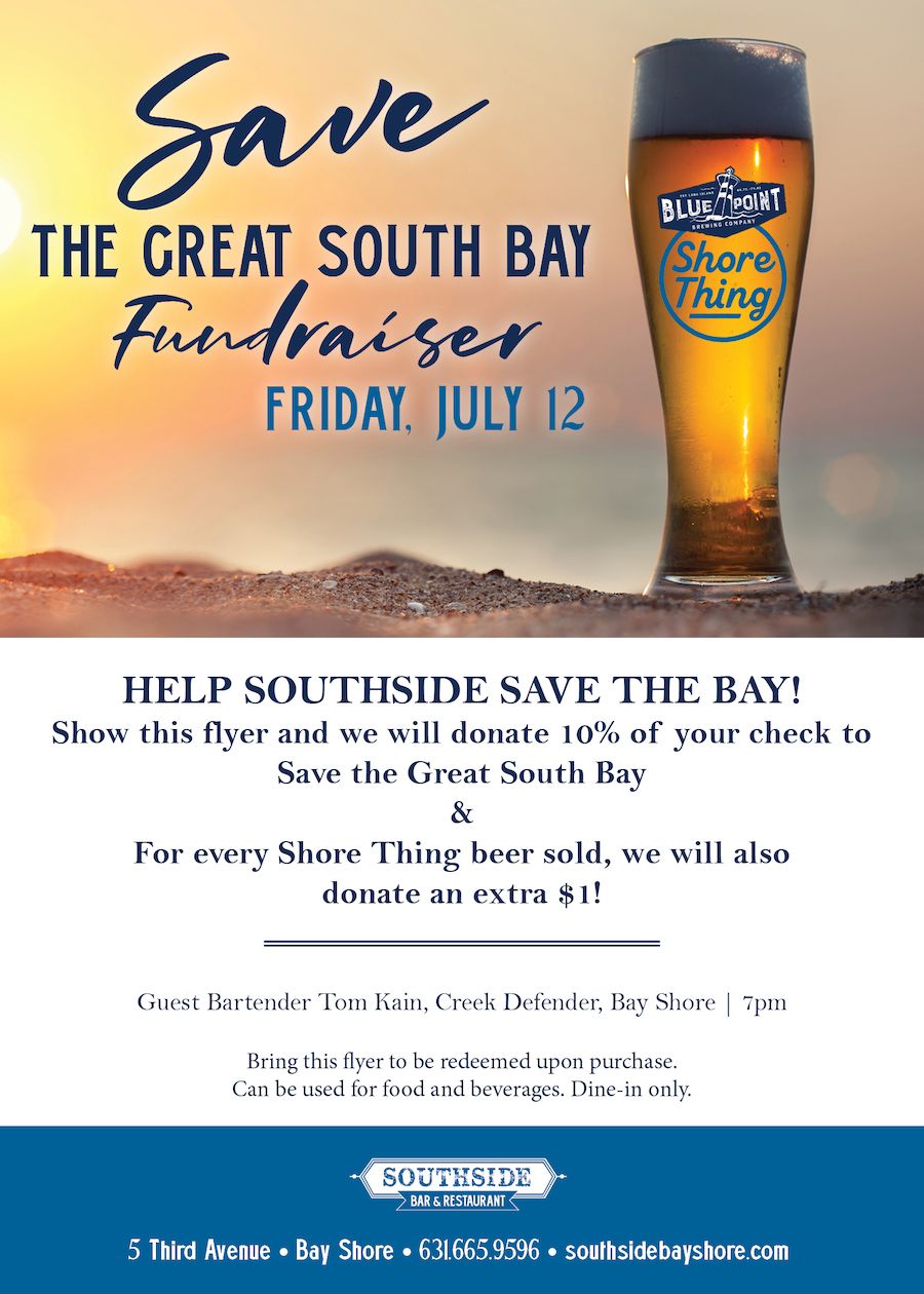 That’s the idea behind the Bay Shore eatery’s new fundraiser with the nonprofit Save the Great South Bay set for Friday, July 12.