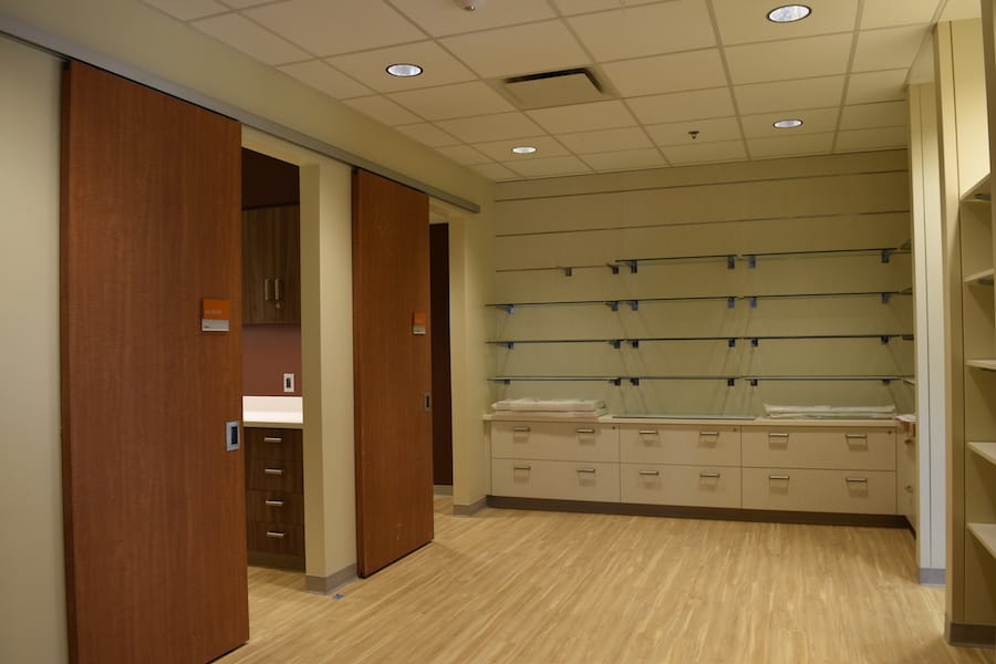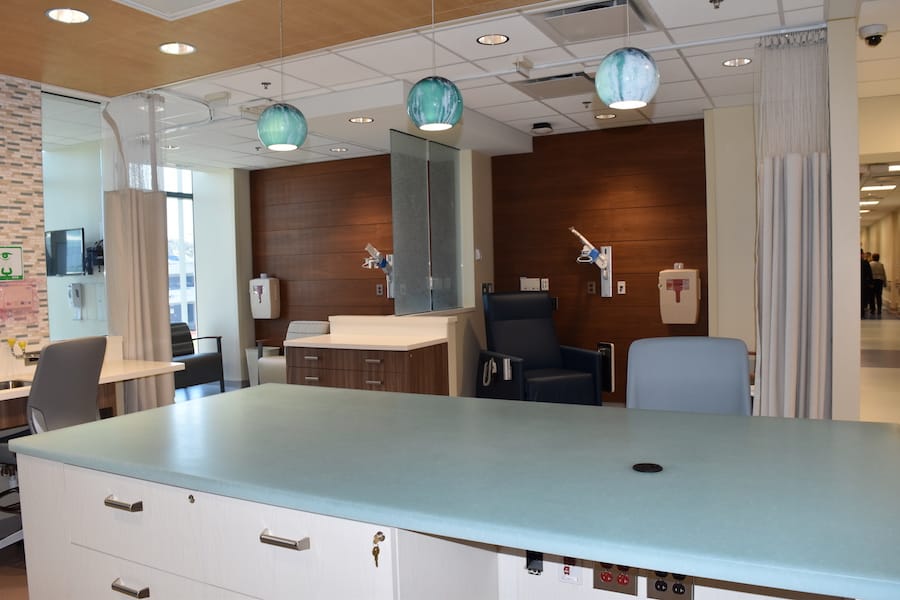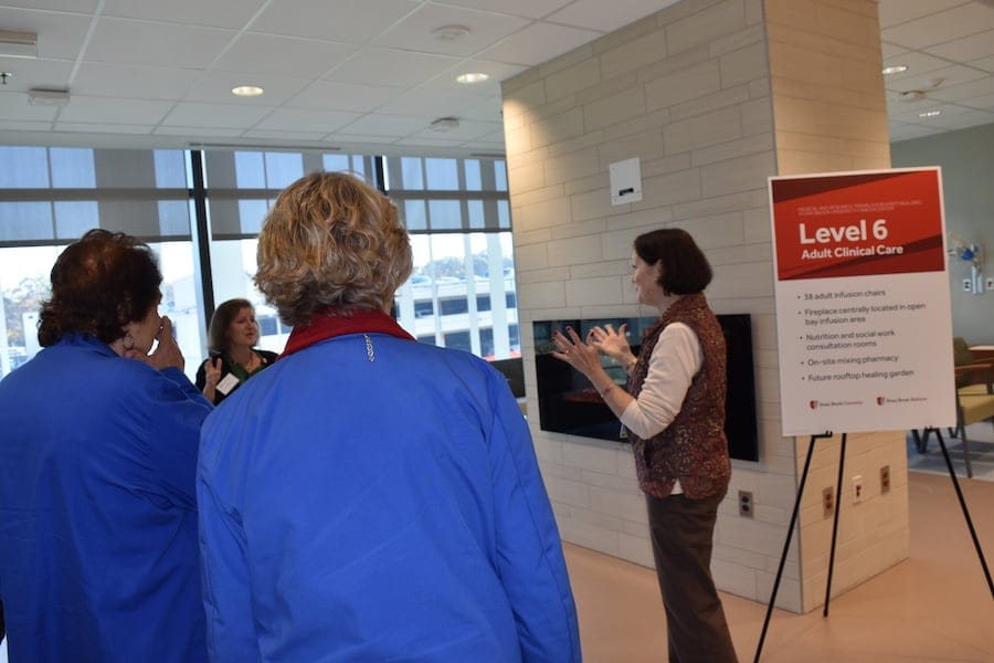 The eight-floor facility, which is attached to Stony Brook University Hospital, will include 38 exam rooms (with an additional six pediatric oncology exam rooms), seven procedure rooms, with 38 adult and 11 pediatric infusion chairs.