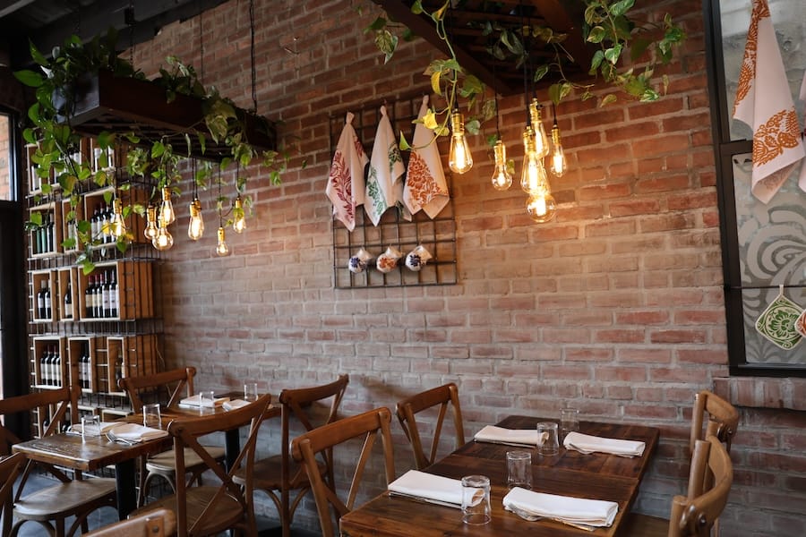 This means fresh, handmade pasta. To replicate the traditional experience, the restaurant includes a lofted area toward the back of the dining room, designed to resemble a grandmother’s pasta-making station. (Fun fact: the name Talina honors Faetanini’s grandmother, a legendary cook in her home kitchen. A mural of her graces the back wall of the restaurant.)