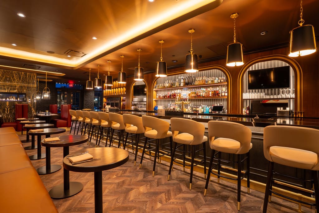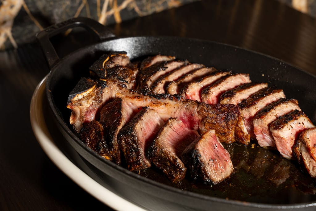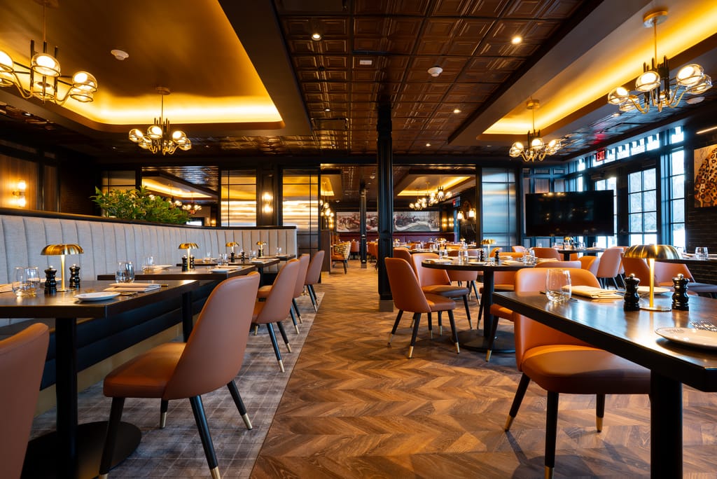 The steaks are the headliners — USDA Prime cuts, dry-aged for 38 days — but the menu features much more. There’s a raw bar and caviar service. Handcrafted sushi rolls. Baby back ribs. Buttermilk fried chicken. Peking duck bao buns. Wagyu pigs in a blanket.
