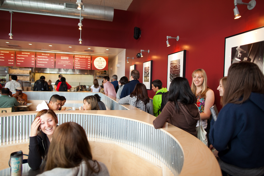 Top: Fresh tacos being made at Chipotle. (Courtesy photo.)
