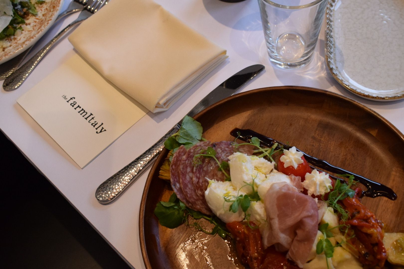 On the menu are those classics with a Farm Italy twist — the burrata with cherry bombs, crostini and 12-year balsamic drizzle, cacio e pepe made with cracked pepper and pecorino, and a penne dish made with brown rice, roasted squash, pistachio and chili honey.