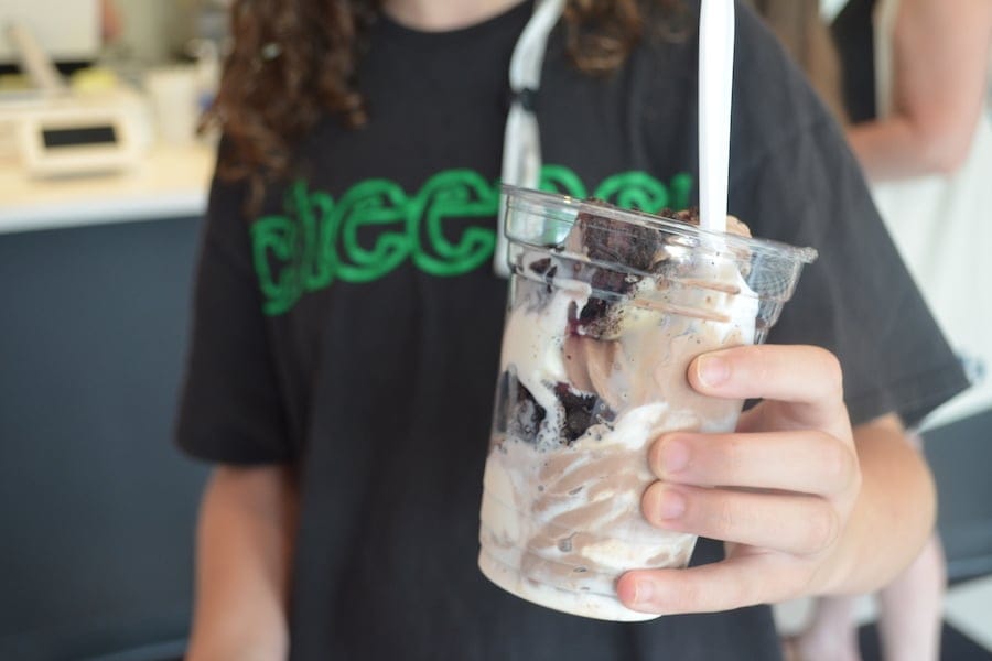 There’s a wide variety of flavors on the menu like the classic vanilla and chocolate, Twix-flavored ice cream, the Elvis Banana which is banana ice cream with peanut butter chips, and her own creation and now a customer favorite: Reese’s Cookie Dough.