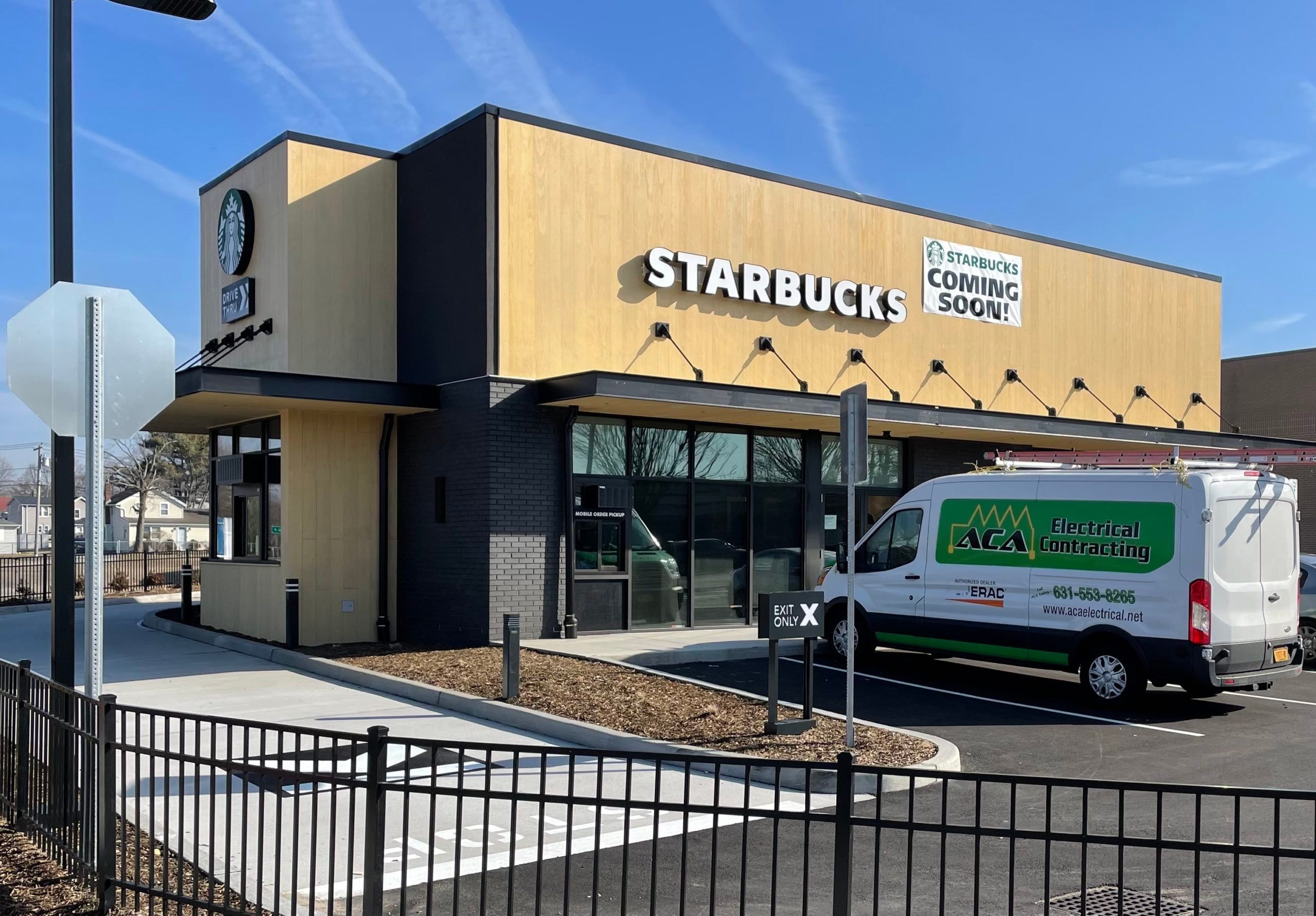 The coffee giant’s arrival to West Main Street — across the street from Blue Point Brewery — comes after months of construction, and following the demolition of the 91-year-old building that housed the former Bargain Bilge Marine Supply shop.
