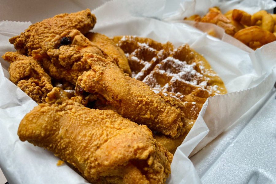 In addition to the fried chicken wings his mother served, he’s paired them with waffles and started serving an array of sides such as mac and cheese, mashed potatoes and candied yams.