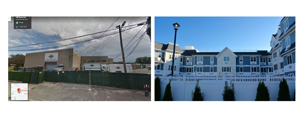 Where warehouses for LandTek once were, there now stands a gleaming-new apartment complex in the heart of Amityville Village.
