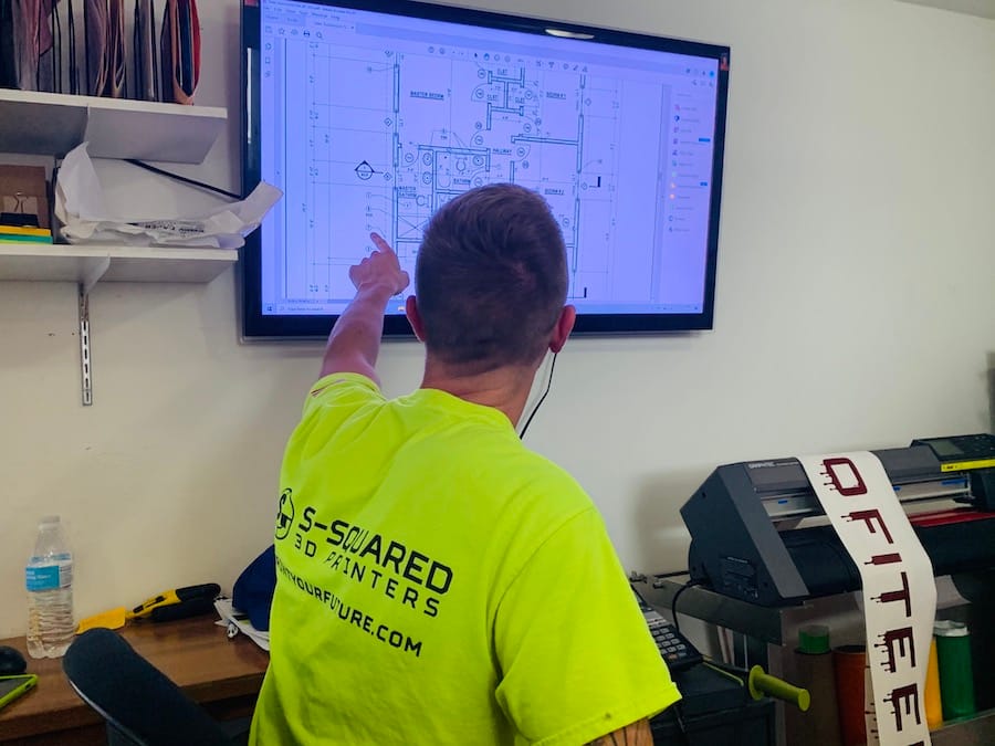 Kirk Andersen looking over the plans of SQ4D’s next project in Calverton