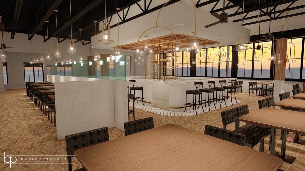 A banquet will run across the western end of the 5,000-square-foot building. The pizza counter will be toward the back and measure 36 feet. And the front of the building will be lined with eight-foot windows.
