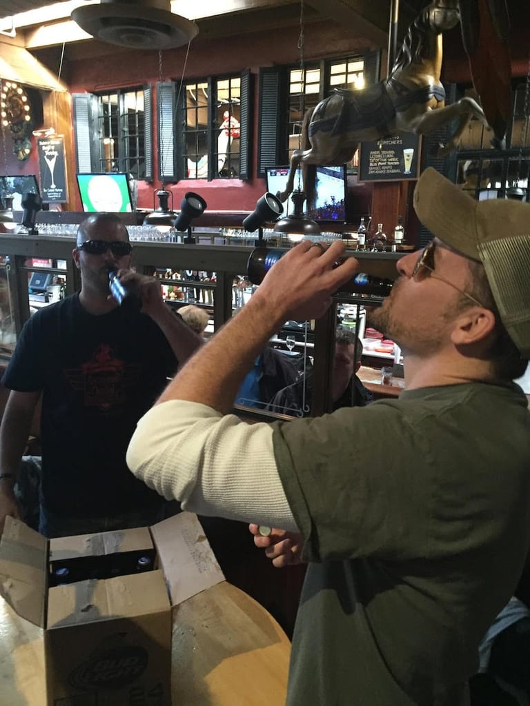 Top: A team chugging beers at a year prior’s Great Case Race. (Courtesy photo.)
