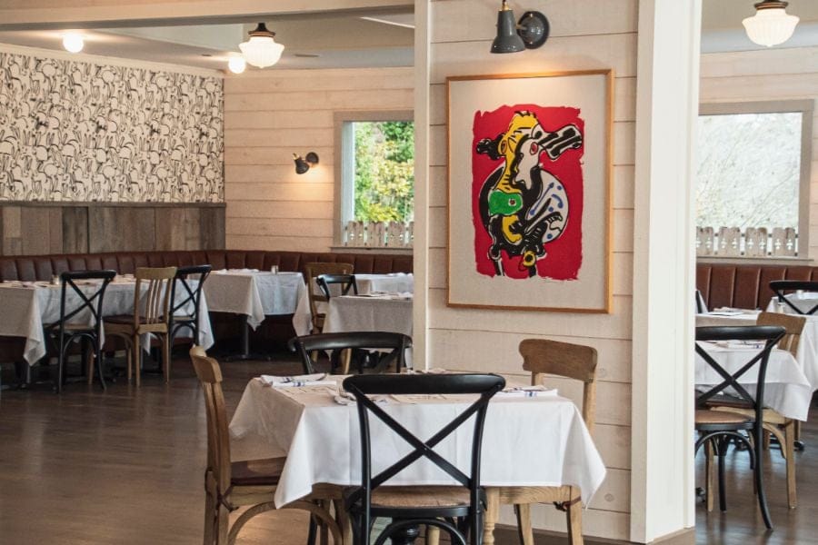 The walls of the spacious 90-seat dining room are whitewashed and feature re-claimed barn wood, the giant-sized kitchen was gutted and is now equipped with gleaming new appliances and cookware, and the grounds feature new landscaping.