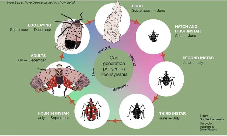 Native to China and southeast Asia, the spotted lanternfly was first identified in the U.S. in 2014 in Berks County, Pa., according to the National Park Service.