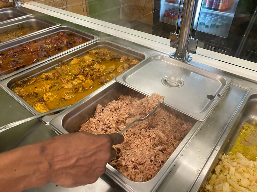Vibes is like a Chipotle for Jamaican food: it is set up like an assembly line, customers can scan their options, and choose dishes like jerk chicken, brown stew chicken, oxtail, fried chicken, red snapper and more. The most popular dish at Vibes is the curry goat, Stewart said, which is his personal favorite too.