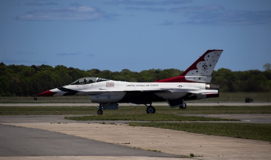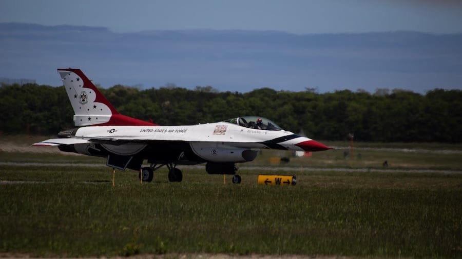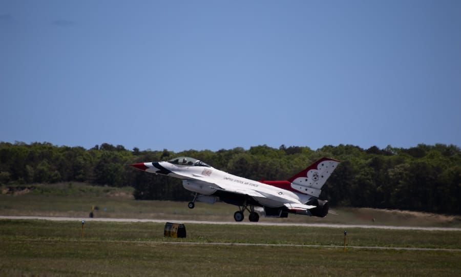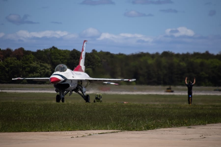 The United States Air Force Thunderbirds have officially touched down at Long Island MacArthur Airport on Tuesday — and Greater Long Island got a first look at the iconic red, white and blue F-16 fighter jets ahead of their big weekend.