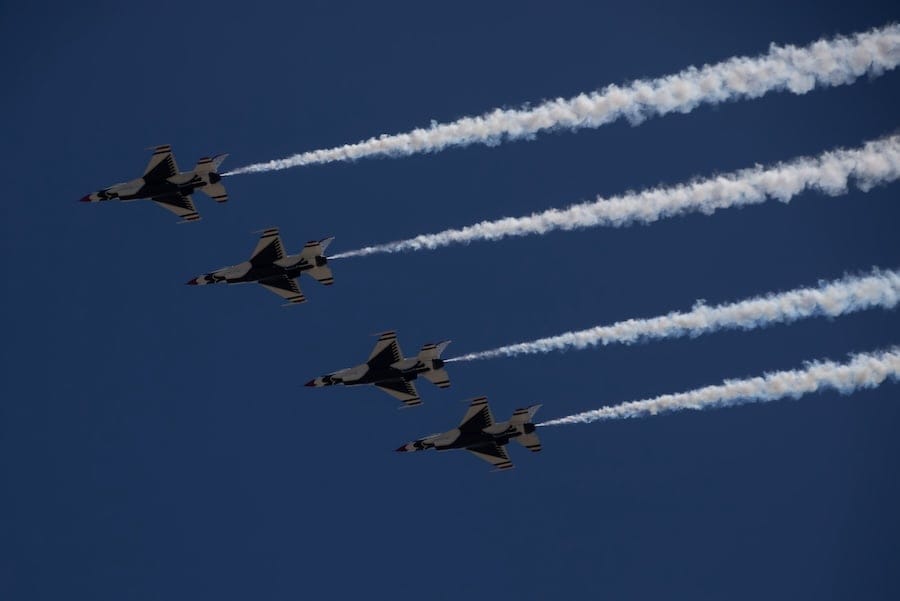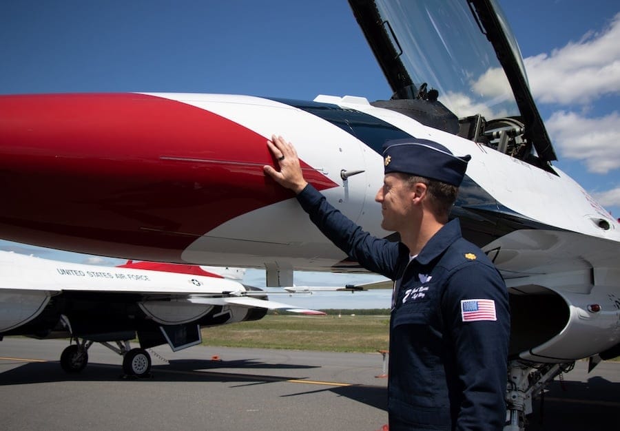 Flying the F-16 Fighting Falcon, the team performs tight formations and thrilling maneuvers meant to inspire audiences and honor the service of America’s Airmen — many of whom have also flown combat missions.