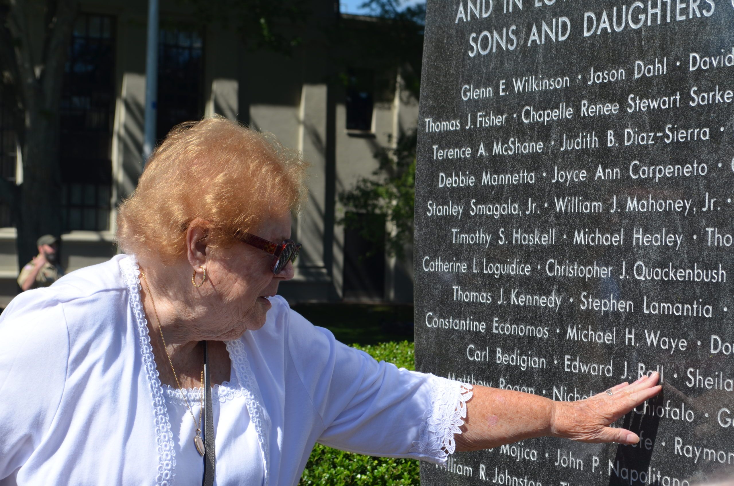 Nancy Nee, sister of New York City firefighter George C. Cain, read a poem she wrote for her brother.